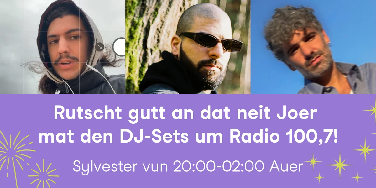 An der Silvesternuecht loosse mir et kraachen! Mat DJ-Sets vun 3 Lëtzebuerger Artisten danze mir mat Iech vun 20:00-02:00 Auer an dat neit Joer.